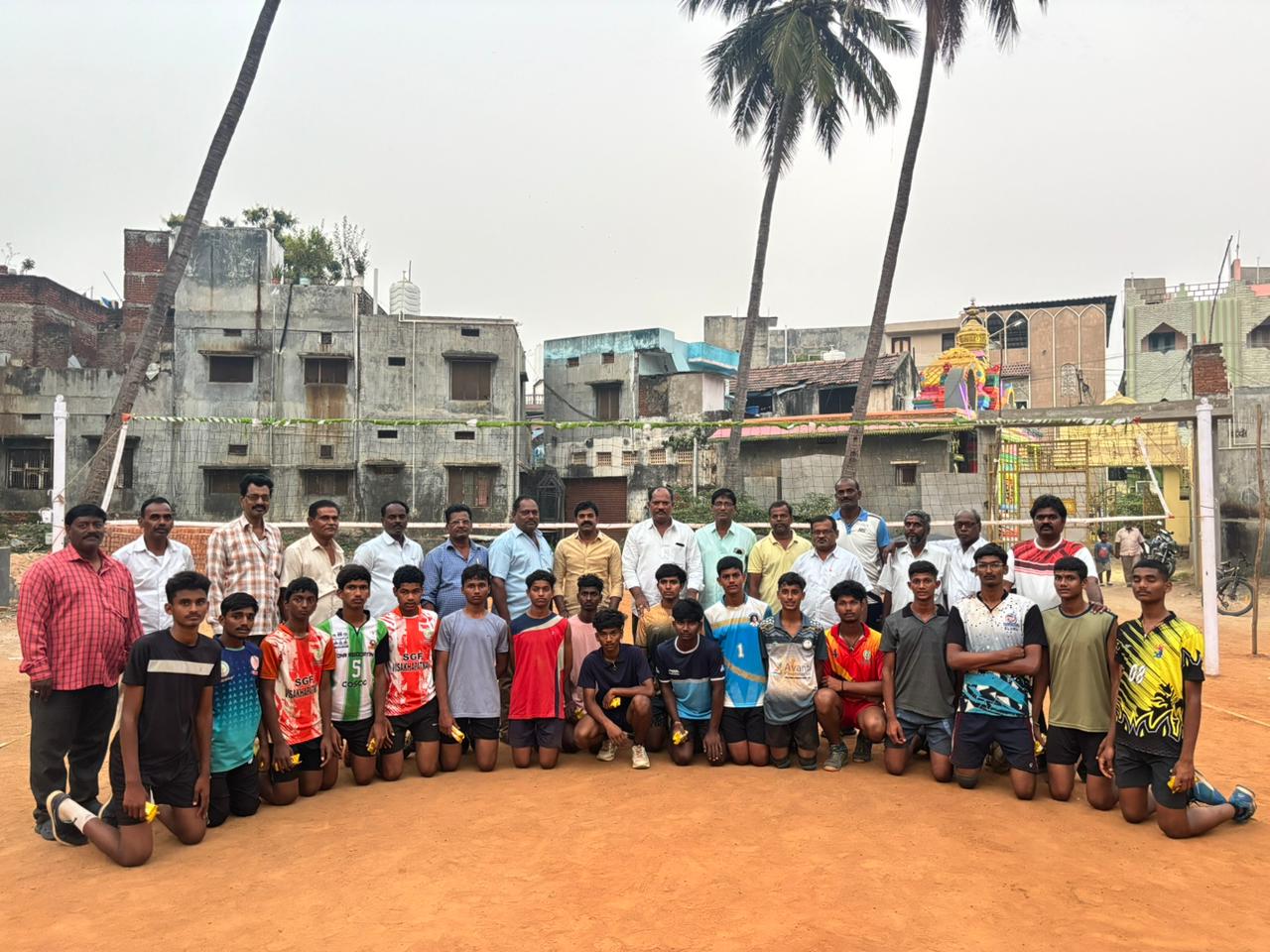 అనకాపల్లి పట్టణం గవరపాలెం దిబ్బవీధి కొబ్బరి తోట లో ఆంధ్రప్రదేశ్ రాష్ట్ర వాలీబాల్ అసోసియేషన్ ఆధ్వర్యంలో జరుగుతున్న నేషనల్ వాలీ బాల్ సబ్ జూనియర్స్ టీమ్ సెలక్షన్ లో ఎంపికైన 18 మంది బాయ్స్ టీమ్,ట్రైనింగ్ కార్యక్రమానికి ఏపీ గవర కార్పొరేషన్ చైర్మన్ మళ్ళ సురేంద్ర పాల్గొని,క్రీడాకారులు తో మాటలాడతూ నేషనల్ టీమ్ కు సెలెక్ట్ అయిననందుకు అభినందనలు తెలుపుతూ మీరు ఈ శిక్షణ కార్యక్రమం లో బాగా ప్రాక్టీస్ చేసి ఈ నెల 25 న వెస్ట్ బెంగాల్ లో జరిగే నేషనల్ టీమ్ లో బాగా ఆడాలని రాష్టానికి మంచి పేరు తీసుకురావాలని శుభాకాంక్షలు తెలియజేశారు.ఈ కార్యక్రమంలో జగన్నాథ స్వామి దేవస్థానం చైర్మన్ దాడి బుజ్జి,ఆర్గనైజర్స్ దాడి శ్రీను,యల్లపు గోవింద్,బుద్ధ శివ, పీలా రమణారావు,,మరియు తదితరులు పాల్గొన్నారు.